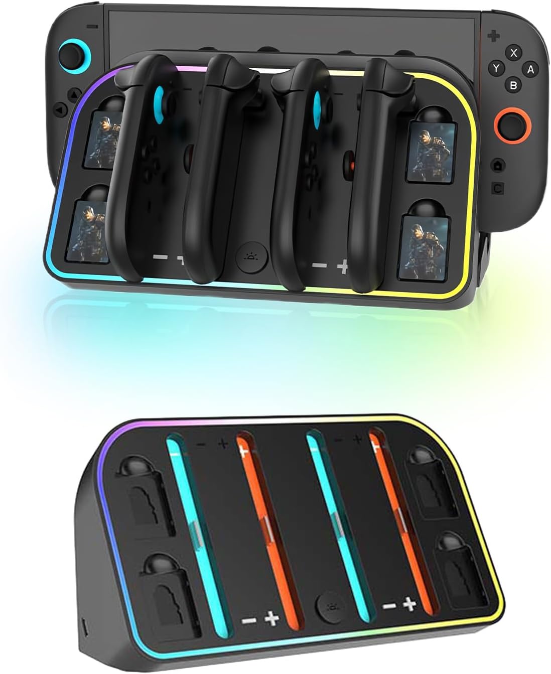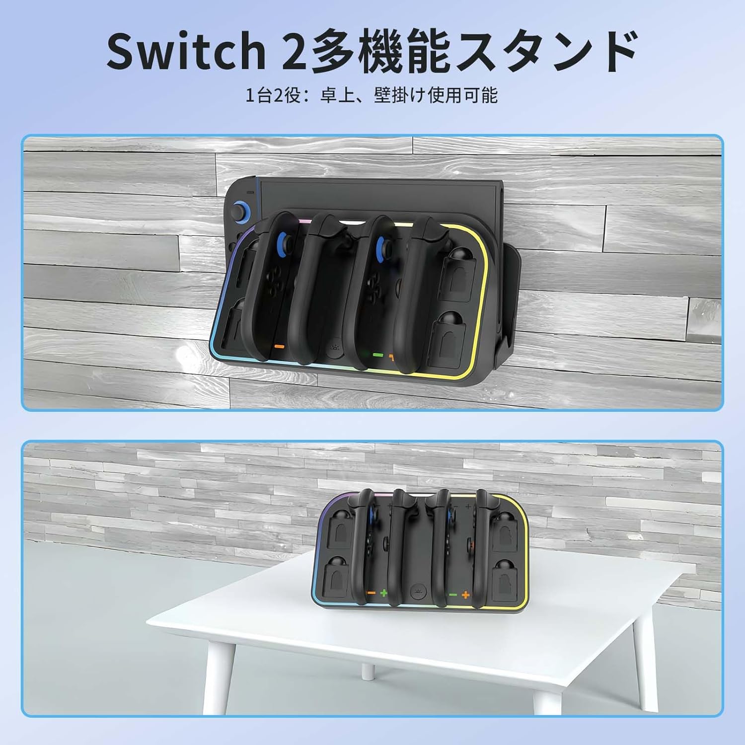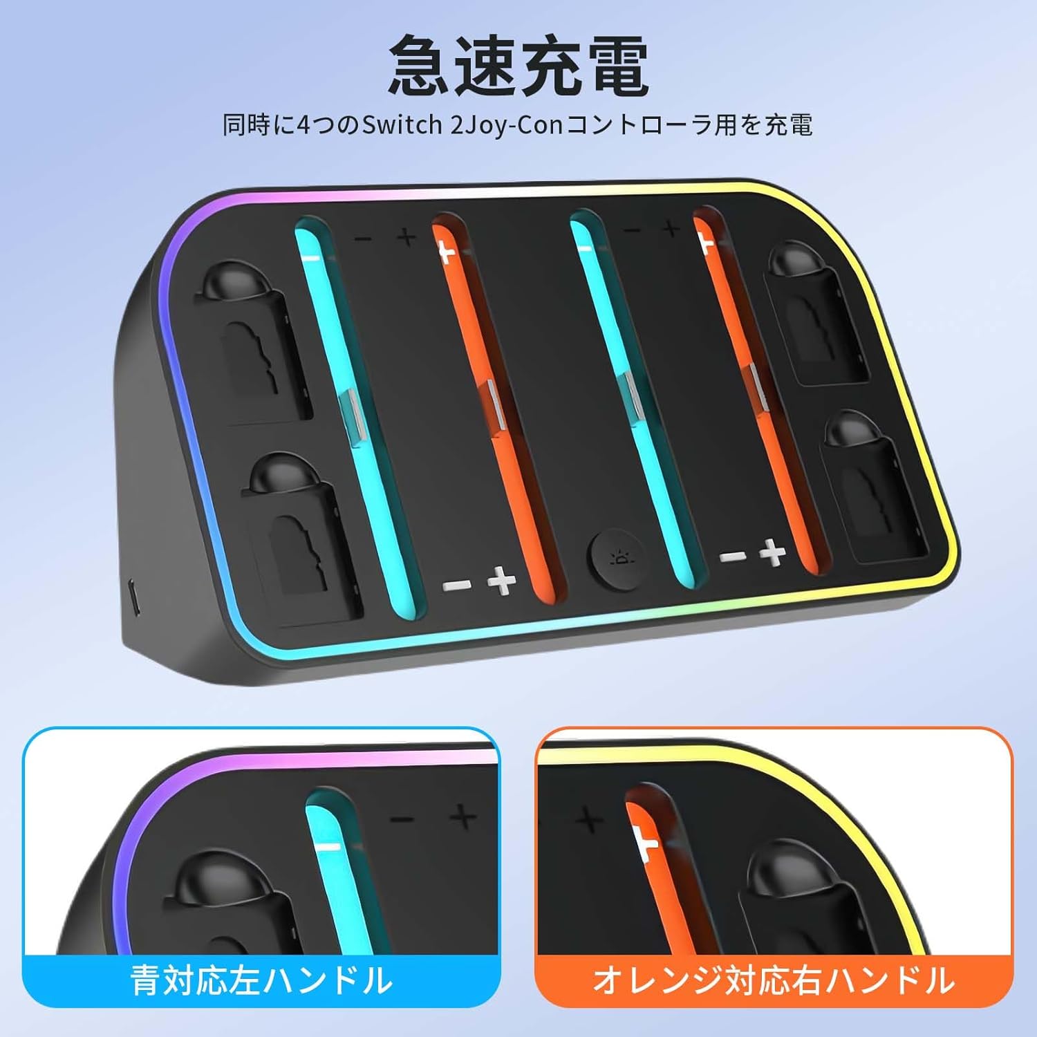 任天堂Switch2 用 ジョイコン 充電機 【 2025年最新版 】 最大4台同時充電 ニンテンドー スイッチ2 用 Joy-Con コントローラー 充電 RGB ライト 付き ゲーミング ゲーム カードスロット 付き 急速充電 取付 簡単 省スペース Switch 2 周辺機器 対応 任天堂 卓上 壁掛け 対応