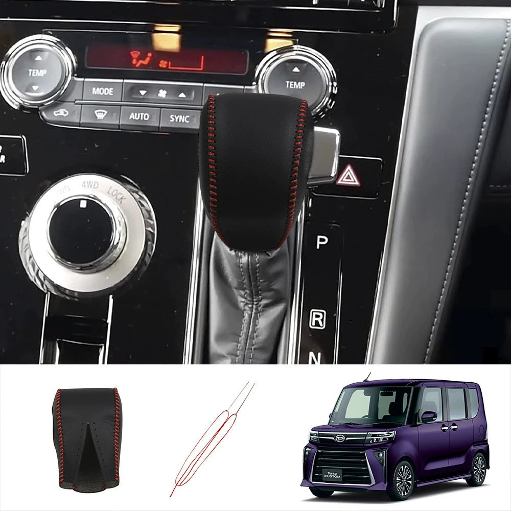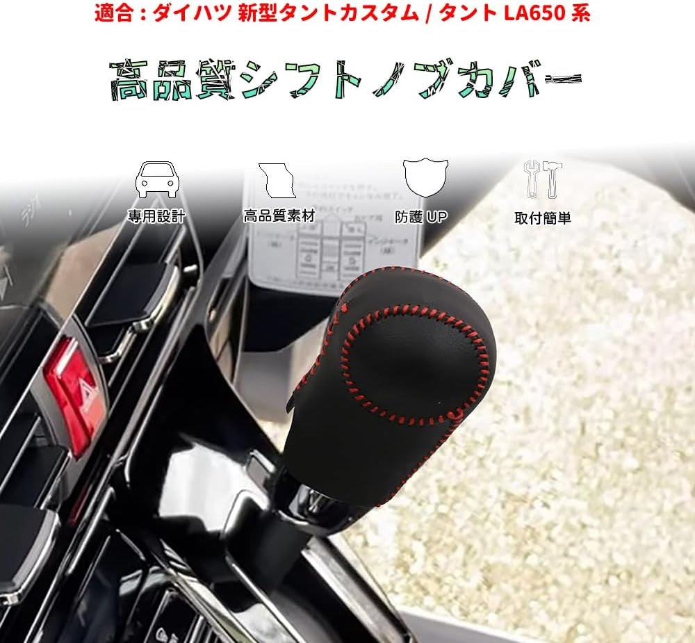 シフトノブカバー 専用 ダイハツ 新型タント カスタム LA650S LA660S LA650系 (2019年7月~現行) シフトグリップカバー 内装 アクセサリー カスタム パーツ カー シフト ノブ カバー 用品 防湿性 防水性 汚れ 傷 防止 簡単 取付 車 車用品 レザー 素材 レッドステッチ