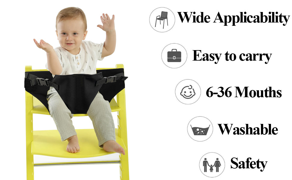 大人用のイスに装着するシンプルなベビー用安全補助ベルトである。