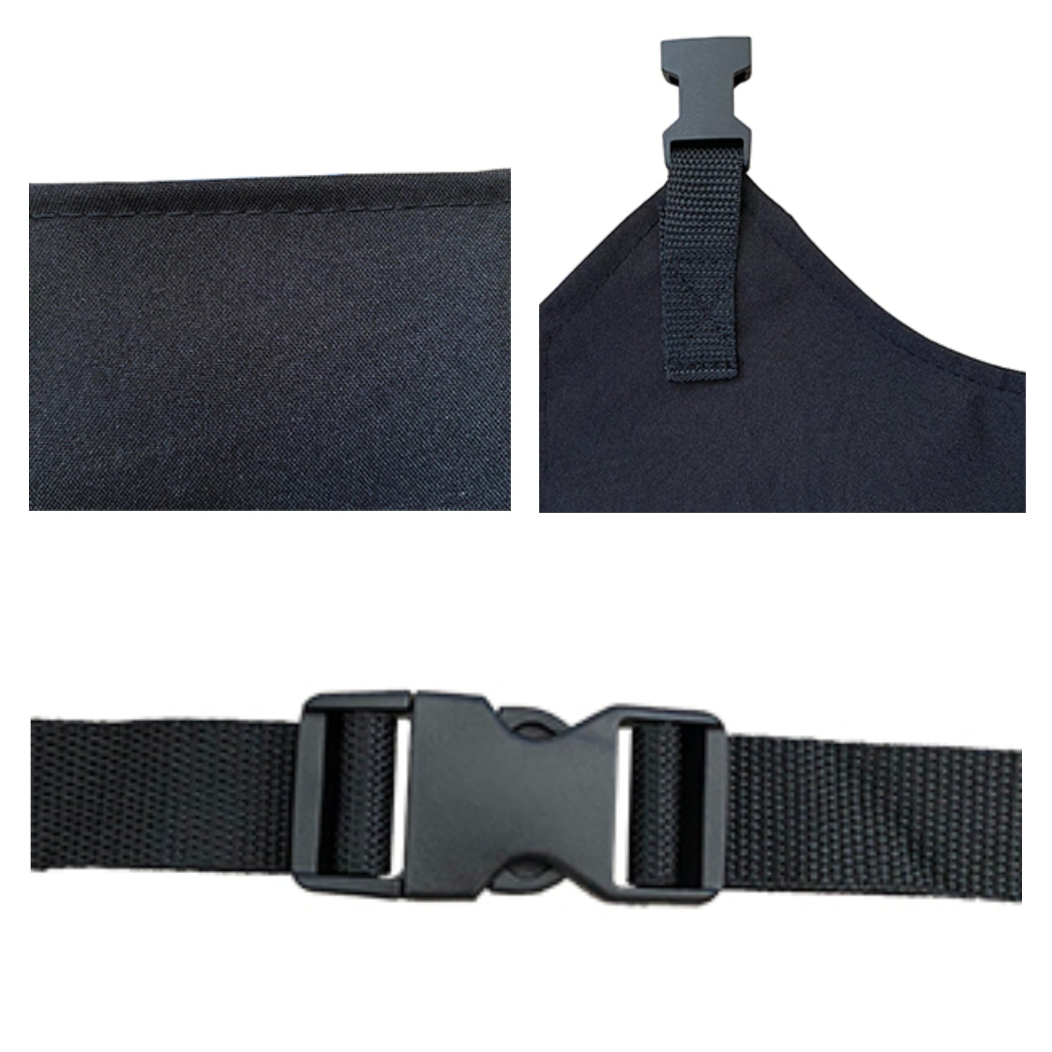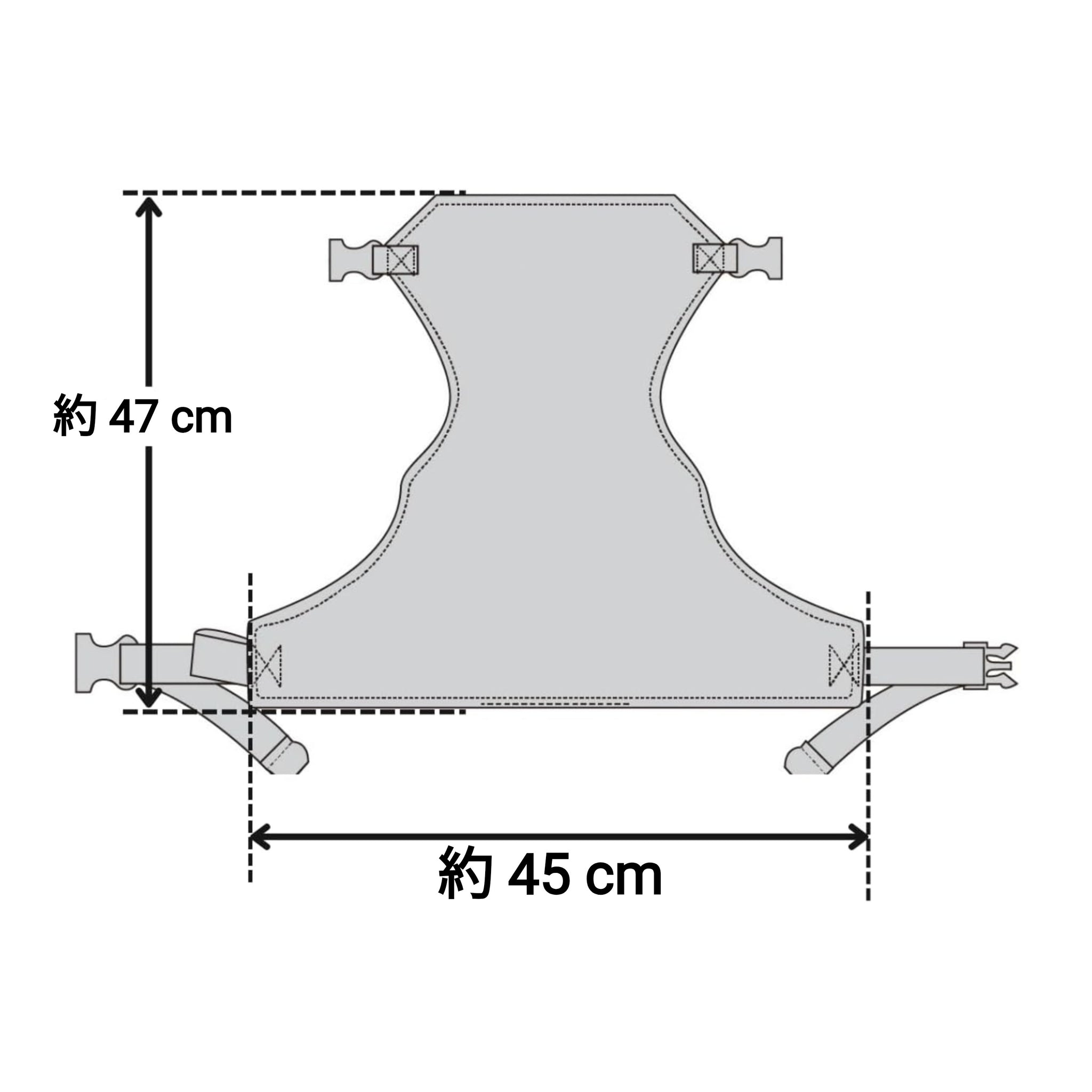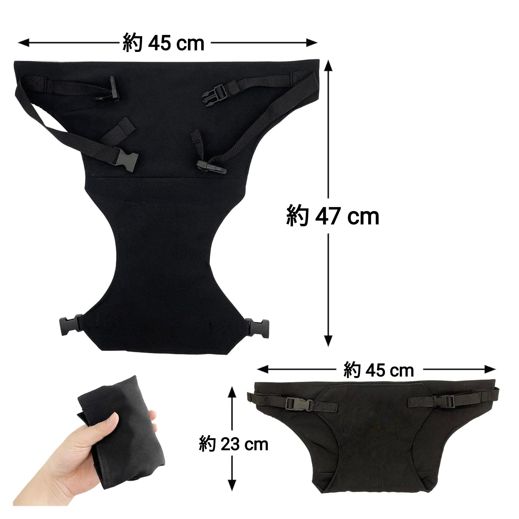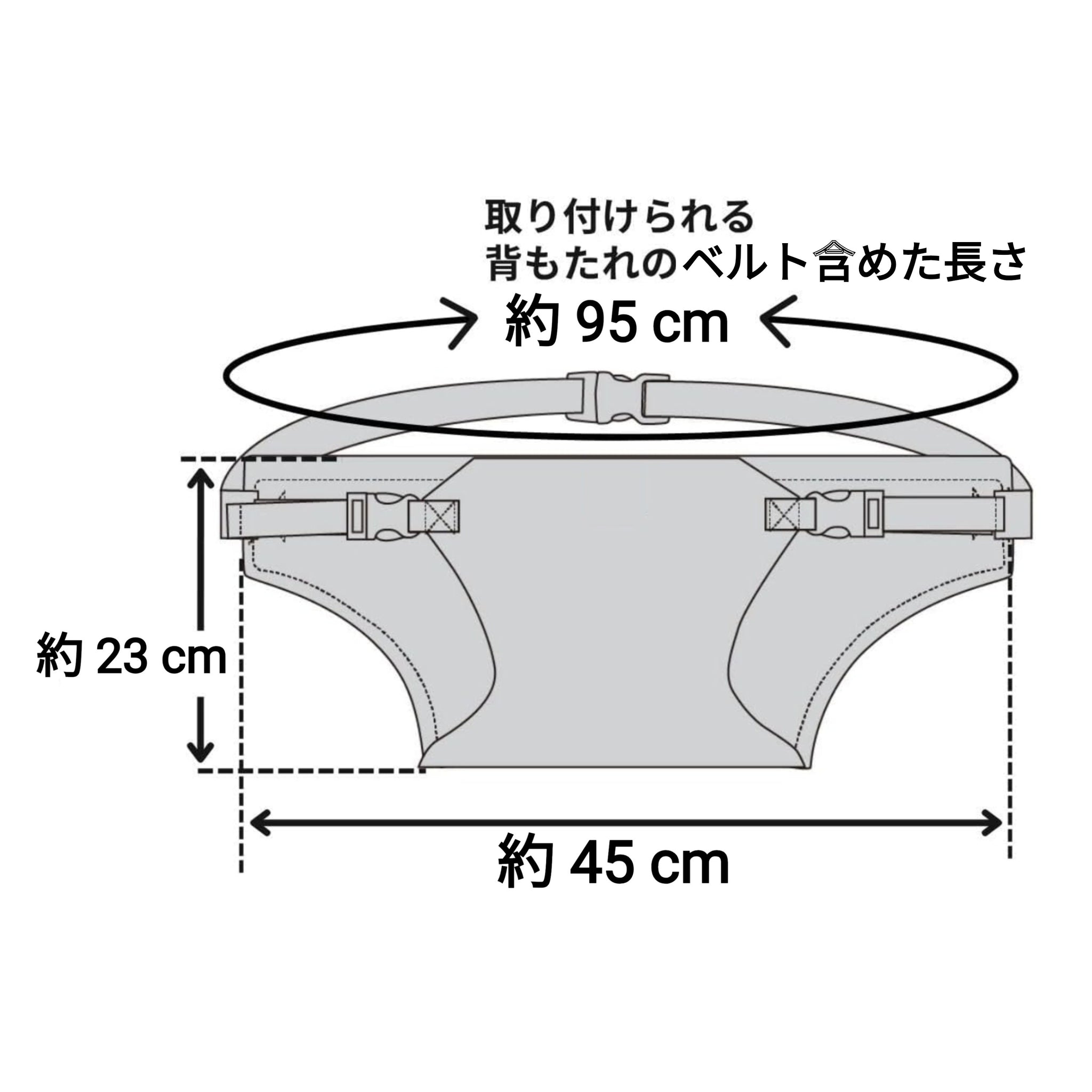 背もたれのあるイスならほぼ取り付けられる構造は、大人の腰に巻きつけられる。