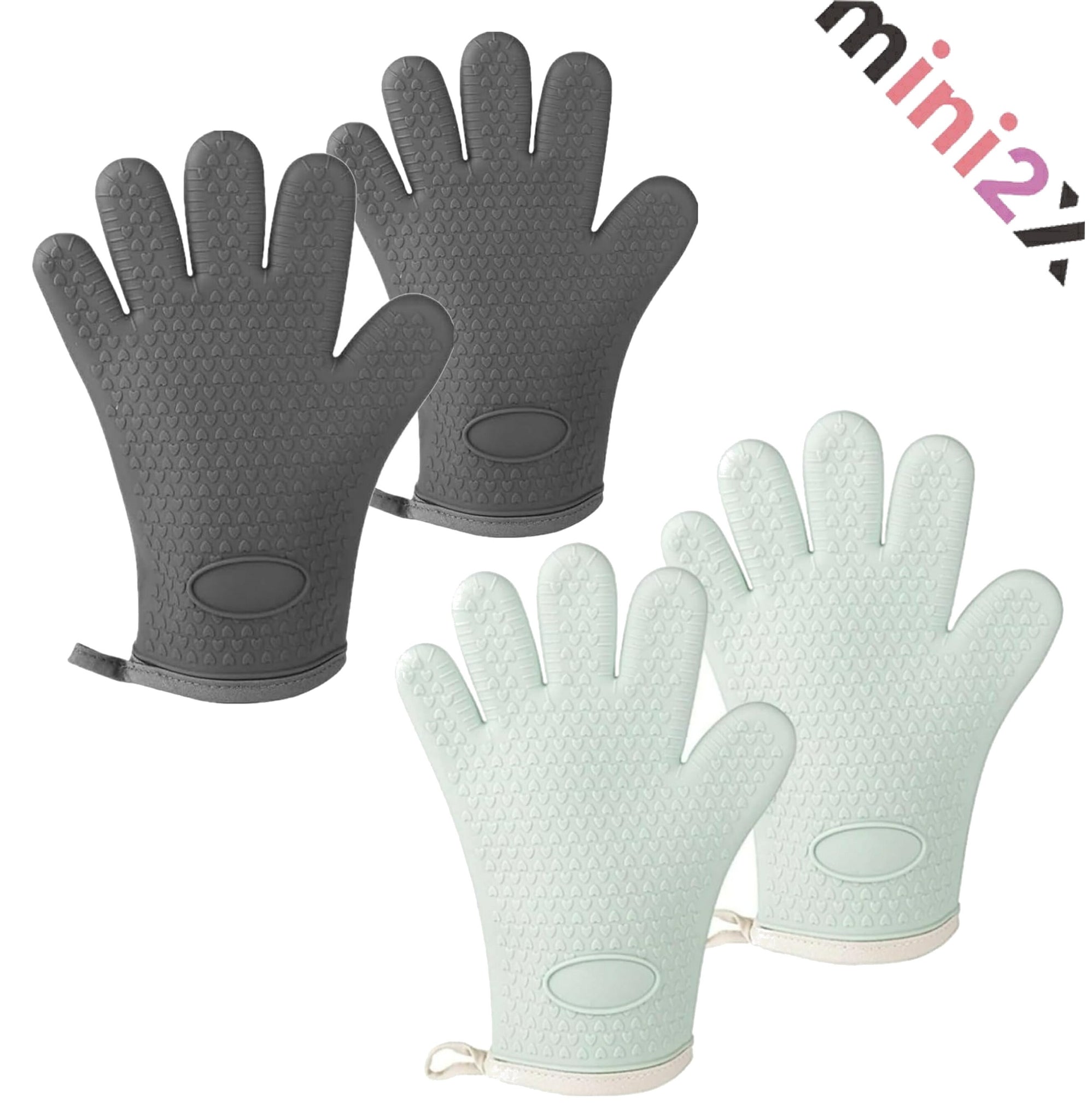 mini2x 選べる2色のシリコン製オーブンミトン両手セット。使いやすい5本指デザインで、着脱が簡単なので、持ち運びにも便利です。 送料無料